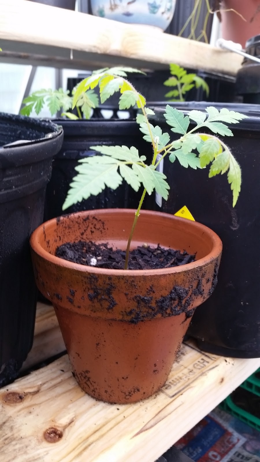 I thought my husband was a little crazy when he ordered flower pots in bulk at the end of summer, but I have now filled every 1 gallon pot! (Well, I still have one, 1-gallon pot, but it doesn’t count because it’s full of spider webs and therefore unusable until hubby evicts any squatters.) I first used all the smaller pots I had lying around for my treelings, and the last few seedlings are sharing a pot with two neighbors. If they all survive, we will have 32 beautiful trees to plant on our land.