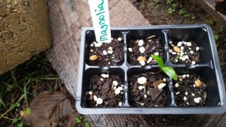 A few months ago, I soaked and peeled magnolia seeds and placed most of them in the vegetable drawers of the bee-supply refrigerator as I read that they need to undergo months of cold temperatures before they will germinate. I planted some directly in seed starter pots and left those outside the greenhouse to naturally go through the seasons. Apparently they don’t need 3 months of cold temperatures. The tender seedlings that sprouted in our abnormally high temperatures last week would probably not survive next week’s temperatures without the shelter of the greenhouse, but the few cold nights we’ve had this year followed by temperatures in the high 70s were enough to get them growing. While only one in the above picture has obvious leaves, two others are about to unfold leaves today.
