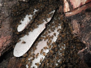 We were asked to try to save a hive inside a hollowed out tree that had been struck by lightening years ago. Pest control companies have exterminated colonies a few times in the past, but bees keep finding this fantastic place to live and moving back in again.