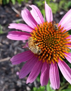 The bees continue to do well here and are bringing in lots of pollen. The city bees abandoned my lavender for Echinacea while we were away. I spotted 5 different bee varieties on the Echinacea and Pholx in just a couple of minutes. The bees are happy. We are happy. Life is good!