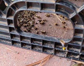 | Dead bees under hive |