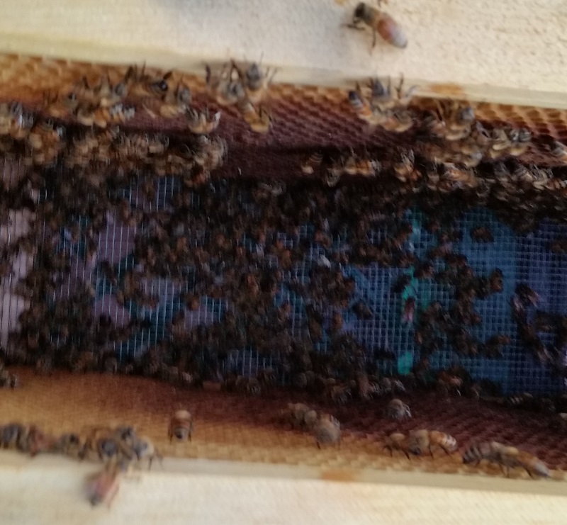 When we returned from Labor Day weekend at the farm, the ground around one of our Nuc splits was littered with dead bees and, on opening the hive, we found a 75% bee loss. Over the next few days, more bees died and the surviving bees pulled the contaminated larvae out of the frames. The state regulatory investigator from Clemson University confirmed that the hive loss was a result of pesticide application. They took the hive with them so that they can try to determine which pesticide was used, and we are waiting to hear back. Even if they had not taken the hive, we would have had to destroy it as the chemicals are clearly ingrained in the wood and frames. The second Nuc from our recent split has less damage, and we are hoping the queen cell and larvae in there are viable.