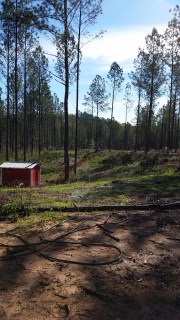 One of my fig cuttings from last year is hanging on for dear life and I believe the other one just gave up. We need irrigation down at the old loading deck, so hubby rented a Ditch Witch from Taylor-Foster on Saturday and started trenching the 400 feet to the orchard. By the end of the day that Ditch Witch almost got stuck because it ran low on hydraulic fluid somewhere (when it comes to mechanical stuff, nothing makes sense to me). Taylor-Foster brought another one out to the farm Sunday morning, so the trench is dug and hubby is over half way glueing pipe.