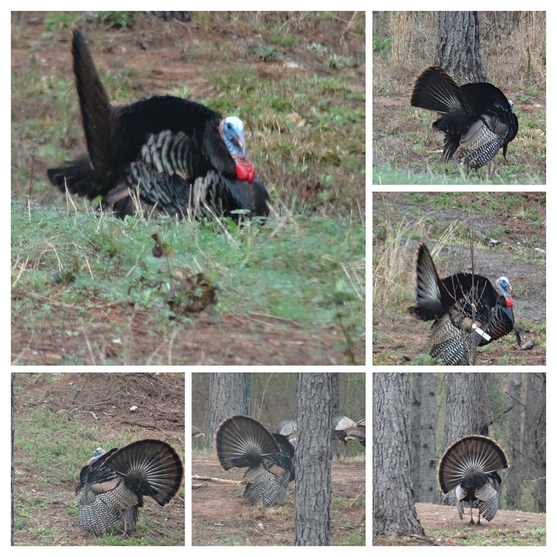 I very reluctantly dragged myself off the couch to go update Quicken before heading out to the bee yard this morning and was rewarded with the sight of a turkey, strutting and fanning right outside the house. We watched for about 30 minutes and took a lot of pictures. What an exciting start to the day!